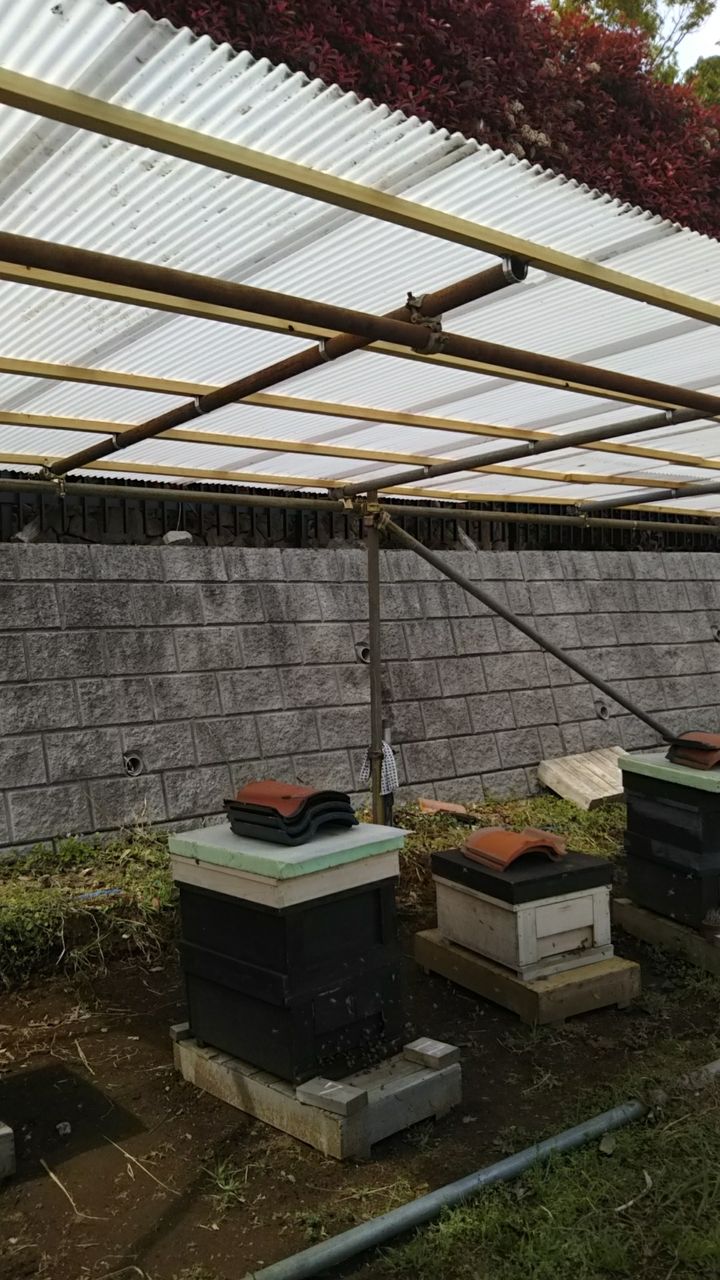 2019年05月10日 屋根が出来ました 先日の内検時、途中で細かい雨が降ってきましたがそのまま内検続行。なぜかというと、屋根が出来たからです!GW中に出来ました。まだ風にあおられないよう波板を切ったり、簾をのせたりの作業が残ってますが、ここ数日の日差しの強さもこの屋根のお陰で和らいでいます。あとは台風などが来たときに飛ばされてしまわないかが心配ですが、今の所いい感じです。 「養蜂日記」カテゴリの最新記事 < 前の記事次の記事 > コメント コメントフォーム 名前 コメント 評価する リセット リセット 顔 星 投稿する 情報を記憶